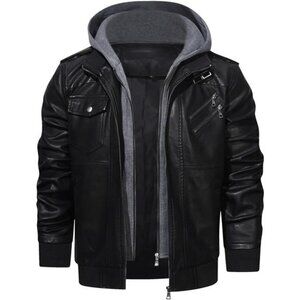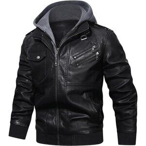 *Item model number:2907 *Department:mens *Date First Available:August 18, 2019 *ASIN:B07WHB39GQ *Best Sellers Rank:#2 in Men's Leather & Faux Leather Jackets & Coats *Customer Reviews:4.4 4.4 out of 5 stars *【WATER & WIND RESISTANT】Finished with eco-friendly faux leather, it keeps you protected anytime you’re out on the move and safe from the rain and snow. Ribbed cuffs and hem traps warmth inside while keeping out chilly wind and providing a secure fit. *【ADDED CONVENIENCE】Stand collar with a removable hoodallows you to play with different styles while the full zip front closure makes it easy to put on or take off. *【MULTIPURPOSE POCKETS】The jacket features side pockets for warming hands up, two decorated zippered pockets and one flap pocket on the chest for carrying wallet, name card, phone and such. *【SUFFICIENT VENTILATION】Our selection features quality lining made from 100% polyester which favor versatility and comfort at the same time and premium leather to allow for airflow. *【COOL STYLE】This men’s jacket is a perfectly cool and modern piece to rock, perfect for commuters or riders who stick to the roads. Team them with jeans for an eye-catching look. item model number : 2907 department : mens