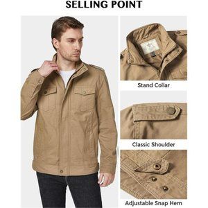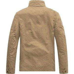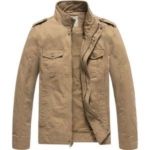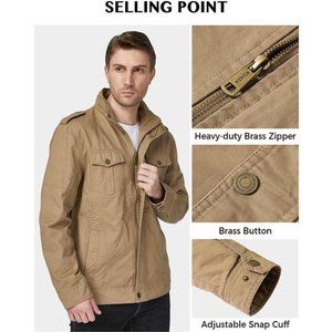 Men's Casual Washed Cotton Military Jacket, Khaki Brown