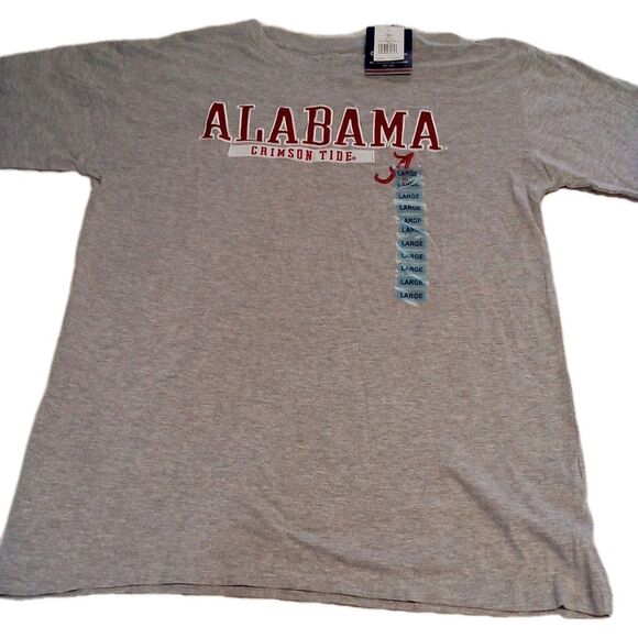 This product is a men's Champion gray short sleeve T-shirt in size large. It is brand new with tags and features the iconic Alabama logo. Made from comfortable material, this t-shirt is perfect for casual wear and showing support for the Alabama team or brand.Pet free smoke-free home