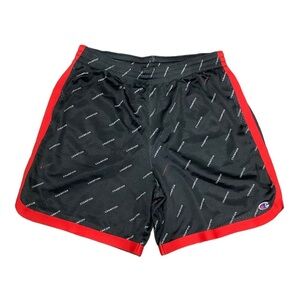 Mens Champion Large Shorts Logo Black Red Basketball Jersey Mesh Drawstring NWOT