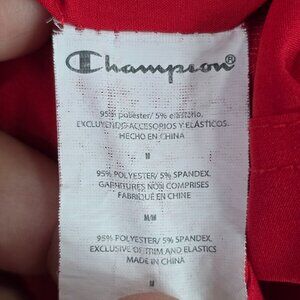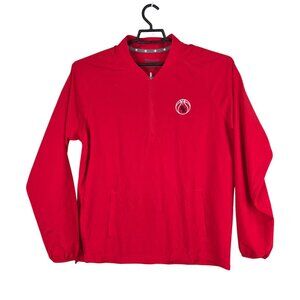 Mens Champion Red 1/4 Zip Pullover Jacket V Neck Long Sleeve Polyester Size M