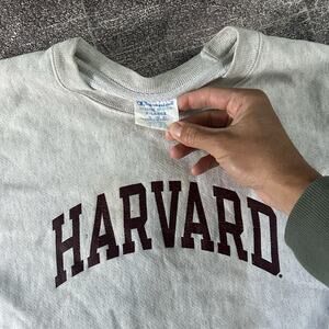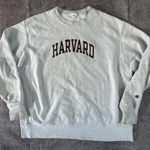 Men's Champion Reverse Weave Harvard Crimsom Heather Gray Crewneck Sweatshirt XL