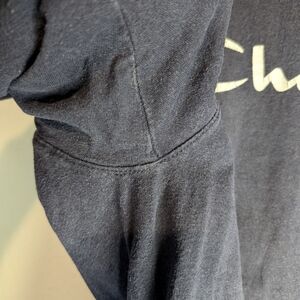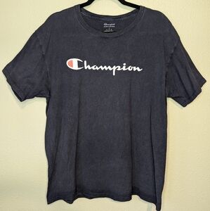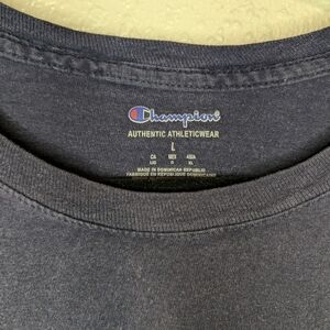 Men's Champion T-shirt faded with distressed logo size Large Navy