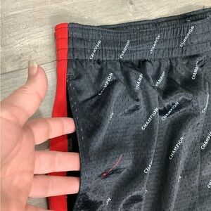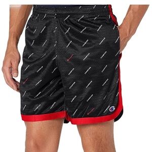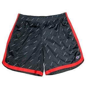 Mens Champion XL 40 - 42 Shorts Logo Black Red Basketball Jersey Mesh Drawstring