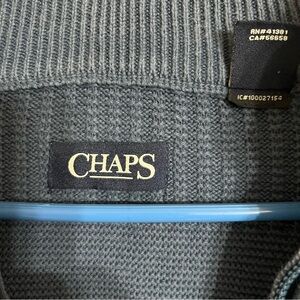 Men’s Chaps 1/4 Zip Mock Neck Cotton Logo Long Sleeve Sweater Blue Size XL