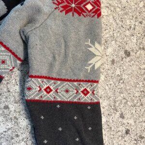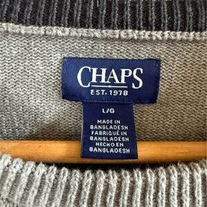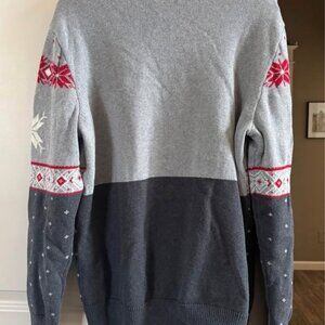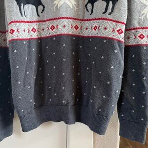 Men’s Chaps Brand Gray Red White Winter Theme Deer Fair Isle Sweater-Size Large