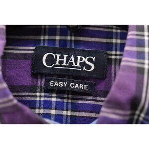 Men's Chaps Easy Care Purple Plaid Button Down Shirt Size Medium