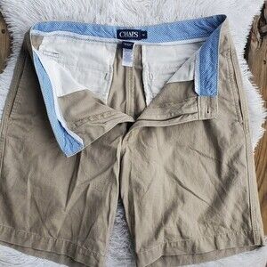 Mens Chaps Flat Front Dressy Casual Khaki Shorts wize 32