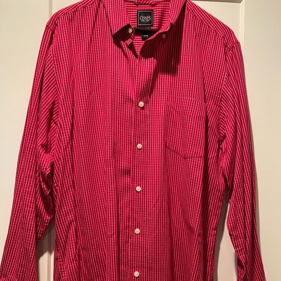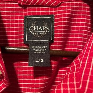 Long sleeve button down in excellent condition from Chaps. It’s a large and is red and white