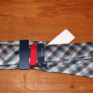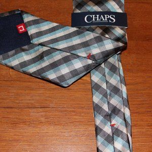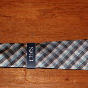 Men's Chaps Necktie Penelope Gingham 100% Silk Silver/Aqua