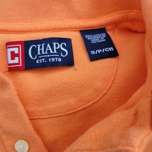Chaps 100% Cotton Polo. Blue Chaps logo is a nice contrast. 2 button collar. Short sleeves.