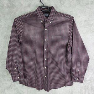 Mens Chaps Red & Black Plaid Shirt Classic Fit Long Sleeve Button Down Size M