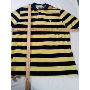 This Men's Chaps Short Sleeve Yellow/Blue Stripes Polo Shirt in size XL is a stylish and comfortable addition to any man's wardrobe. With its regular fit and short sleeves, this Polo is perfect for casual or semi-casual occasions. The unique yellow and blue stripes give it a fun and vibrant look, while the Chaps brand ensures quality and durability. Perfect for pairing with jeans or dressy shorts, this Polo is a versatile and fashionable choice for any man looking to elevate their style.