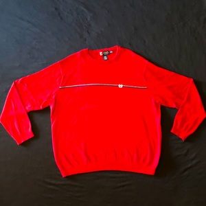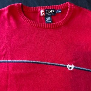 Men’s Chaps Pullover sweater in excellent used condition. Men’s size XXL (2XL) No rips or stains. Red crewneck sweater with single blue and grey stripes across chest. Open to offers!