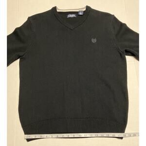 Mens Chaps V-Neck Sweater Tight Knit Long Sleeve 100% Cotton Black Sz Large EUC
