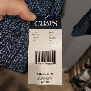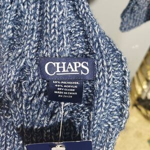 NWT Men's Chaps knitted blue scarf. Measures 74" length and 4" wide. Comes from a smoke free and pet friendly home.