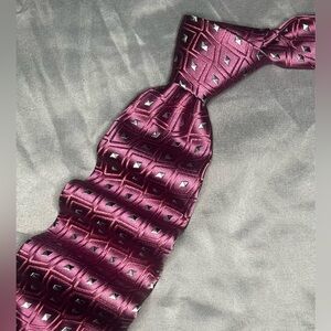 Men’s Charvet Vintage NWT Pink Silver Geometric Regular Designer Silk Italy Tie