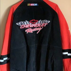 Men’s suede Chevy racing NASCAR jacket with the zipper and pockets
