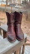 Rugged dark brown leather boots. Classic western style. Perfect for outdoor adventures.