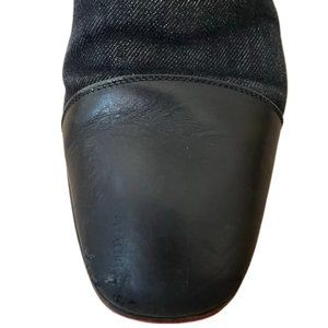 Christian Louboutin Black Leather, Canvas And Suede Greggo Oxfords. They have been re-soled (in red of course) just in the front half so the Louboutin signature and size still shows. There are some scrapes on the toes of the shoes as seen in the last 2 pictures). Please see all pictures before purchasing. Leather insoles. Made in Italy. Size 40 (US size 7).