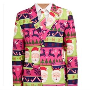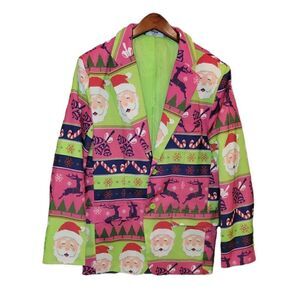 Mens Christmas Blazer Neon Santa Ugly Christmas Blazer Sport Coat M 38-40