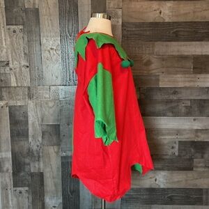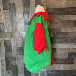 NWOT! This festive Elf costume is red and green. It offers a hat and attached beard, an elf tunic, and green shoes. The hat has baseball cap snaps in the back for an adjustable fit. It is has not been worn - it is brand new with tags!