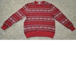 Mens Christmas Sweater Dockers Red Fairisle Large Long Sleeve Crew Cotton