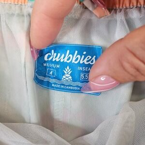 Keywords: Chubbies, Swim Trunks, Swim Shorts, Medium, Aztec Print, Geometric Print, Turquoise, Pink, Peach, Gray, Drawstring, Elastic Waist, Mesh Liner, Summer, Beach