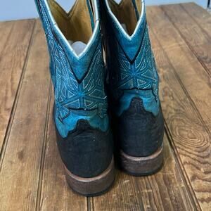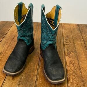 Mens Cinch Edge great handmade cowboy boots teal black square toe size 6.5