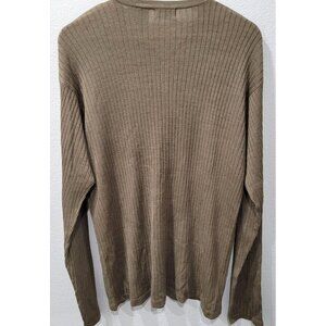 Men's Claiborne V-Neck Pure Silk Pull Over Ribbed Knit Sweater Burnt Sand Size L