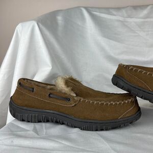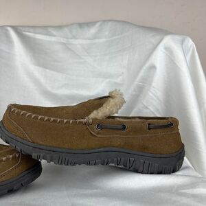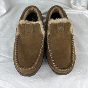 Men’s Clarks Venetian Suede Moccasin Slippers Sage Taupe Fut Lined Suede Loafer Size 8