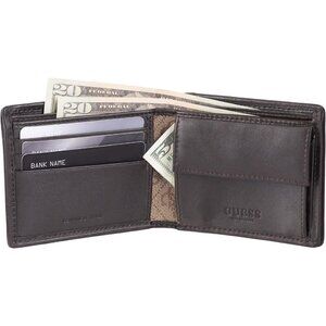 GUESS DESIGN: This wallet captures the essence of classic Guess style with an all over Quattro G design and interior coin pocket.