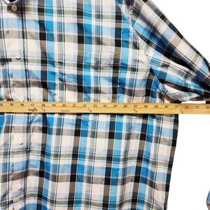 Mens Classic Collection Size 4XL Plaid Button-Up Shirt Blue/White Regular Fit