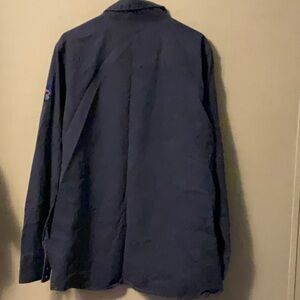 Discover timeless style with this classic navy shirt jacket, ideal for any occasion. Its lightweight fabric offers comfort and ease.