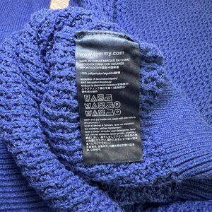 Great preowned condition Authentic Tommy Hilfiger cable knit sweater features the iconic flag collar detail and luxurious textured knit construction. Royal Blue. Iconic red, white & blue flag stripe on collar. Quarter-zip pullover with cable knit texture. Long sleeve with ribbed cuffs. It's a versatile wardrobe staple that pairs perfectly with chinos, jeans, or dress pants.