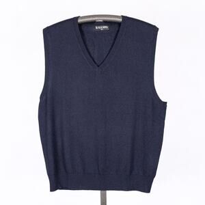 Men's Classic Wool Cashmere Pullover V-Neck Sweater Vest Size XL Blue Academia