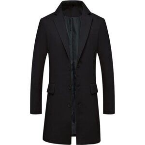 Men's Classic Wool Trench Overcoat Single Breasted Mid Long Wool Blend Top