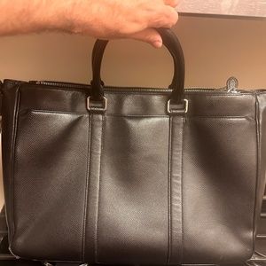 Black, Coach, Pebble-leather work bag with adjustable shoulder strap and handles Silver zippers and hardware