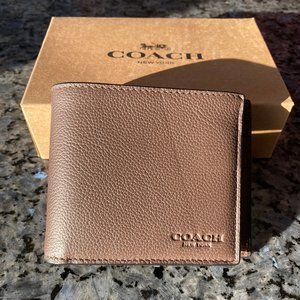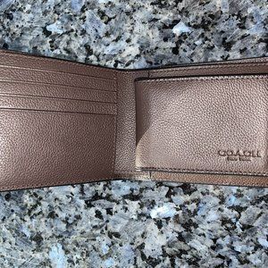 Brand new, never used men's Coach 6 card pebble leather wallet with 2 card removeable ID insert.
