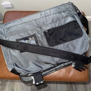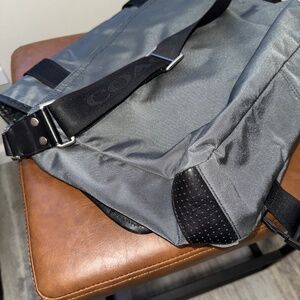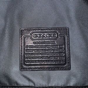 Coach bag in good condition, slight wear as I used it to carry my macbook and supplies while in college for a few semesters. Has tons of compartments and storage. It’s mostly made of nylon with genuine leather trim.