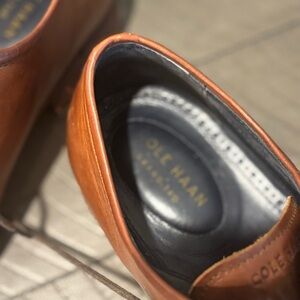 Classic Cole Haan men’s oxford dress shoes in genuine brown leather. Timeless lace-up style with sleek detailing, perfect for work, weddings, or any dress occasion. Quality craftsmanship with a comfortable fit.