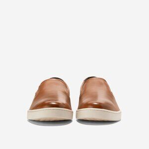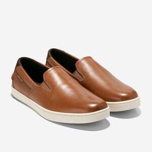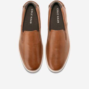 New (in-the-box), tan slip-on. Stylish and very comfortable. Men's size 9M. Color tan with off-white sole. Nice!