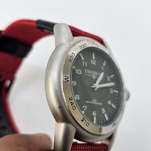 Men's Coleman Watch 41MM Green Dial Date New Red Black Canvas Bands New Battery