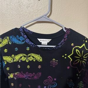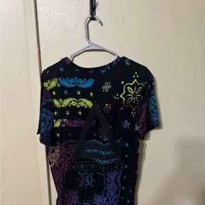 Vibrant graphic t-shirt with multicolor patterns. Perfect for casual wear.