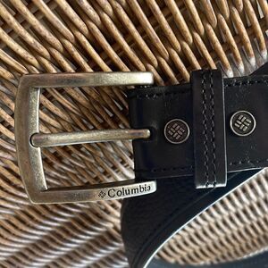 Men's Columbia Black Leather Belt, Size 34. In near new condition. Leather measures 39.75", Buckle 2".