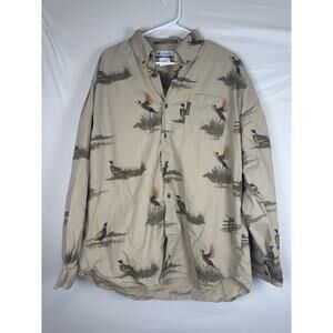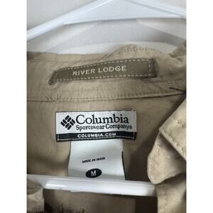 The Men's Columbia Button Down River Lodge in size Medium is a stylish and versatile addition to any man's wardrobe. This long-sleeve shirt features a classic button-down collar and comes in a subtle beige color, perfect for casual occasions. The River Lodge model from Columbia offers a comfortable fit and quality construction, making it a reliable choice for everyday wear.