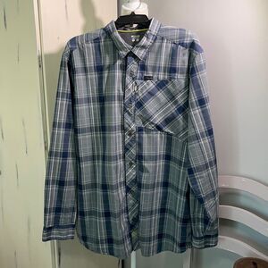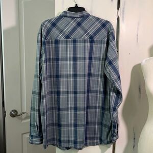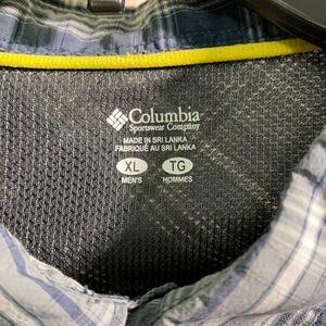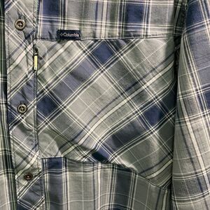Men’s Columbia Size XL button up. Zippered front pocket. Blue and gray plaid. Great used condition