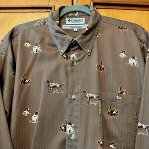 Men's Columbia Long Sleeve Button Down Hunting Dogs Size Large EUC