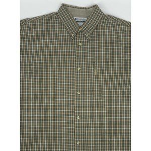 Men's Columbia Long Sleeve Button Down Shirt Pocket Green/Tan Plaid XL