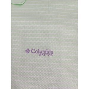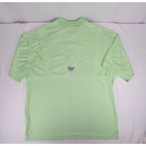 Men's Columbia PFG Performance Polo Shirt Size Large Green & White Stripe Active